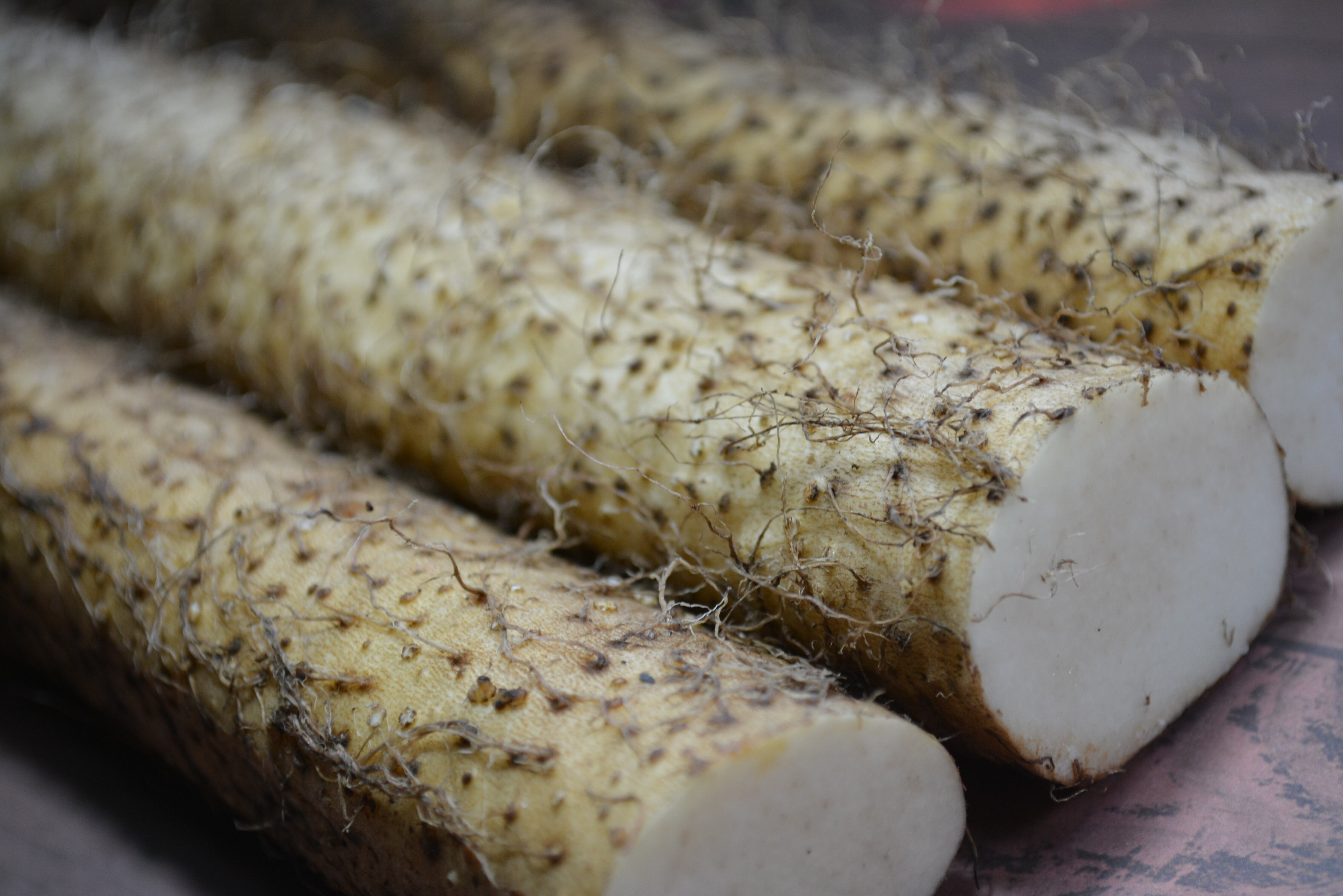 自然薯は、ひげ根をコンロなどの火であぶり焼きし、たわしなどでこすり洗いしてください。皮が薄く口に残らないので、皮を剥がずにそのまま調理できます。